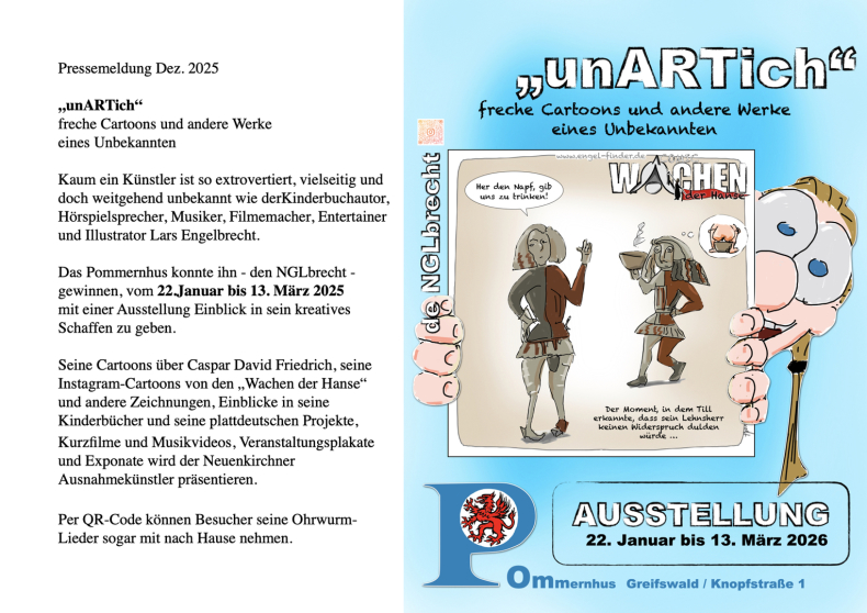 Im Sommer gibt es auch eine Ausstellung der Cartoons vom NGLbrecht in Ribnitz-Damgarten.